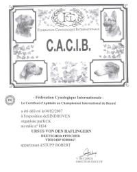 Anwartschaften: CACIB, (kein CAC - wird in F in der Ch.-Klasse nicht vergeben)