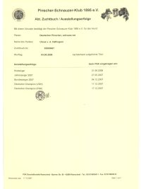 - Erfolgreichster Deutscher Pinscher (Ausstellung) der PSK LG Rheinland 2006