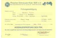 - Fährtenprüfung (FPr) 2 (96 Punkte, Note vorzüglich)
